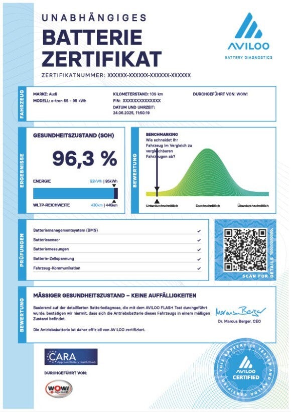 Ein Batteriezertifikat macht den Akku zur Vertrauenssache. Ob beim Kauf, Verkauf oder Leasing eines E-Autos: Klare Fakten schaffen Sicherheit und steigern den Fahrzeugwert.
